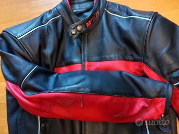 Giubbotto in pelle da moto marca Mtech tg52, con imbottitura invernale estraibile, protezioni spalle gomiti schiena estraibili, come valore aggiunto graffi da caduta su interno manica DX .