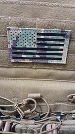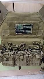 Dotato di spallacci regolabili, tasche frontali porta caricatori ed emblema con bandiera USA.
