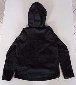 Vendo giubbotto sportivo bambino, praticamente nuovo, usato pochissimo, in occasione di allenamento calcio, con zip, 3 tasche (1 con cerniera), cappuccio, polsino a rete con elastico, colore nero, taglia 10 anni, 133/142 cm, utile in caso di maltempo (vento e pioggia), 100% poliestere, Kipsta (Decathlon)