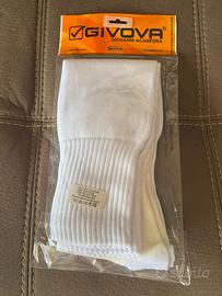 Calzettoni bianchi Givova, taglia 40-47 adulto. Logo del marchio incorporato sullo stinco. Nuovi con etichetta e imballaggio originale.