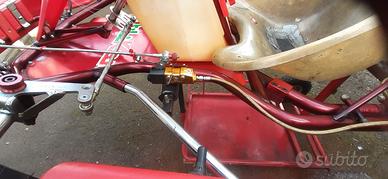 vendo solo telaio go kart con cerchi e gomme nuove originali dell'epoca presa diretta in ottime condizioni telaio tibi kart con pompa freno nuova mai usata, punzonatura del mondiale 1998 1999, volante in alcantare rosso, gomme nuove, colore rosso trasparente telaio in ottime condizioni non graffiato sotto. senza motore prezzo trattabile biret Tony crg Maranello intrepid