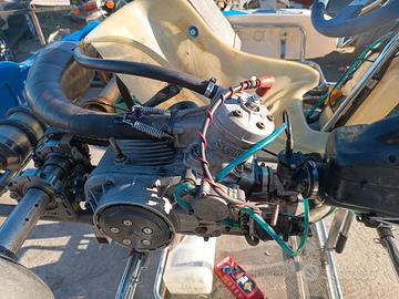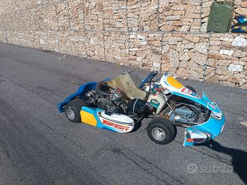 Vendo kart 125 pronto pista, telaio top kart ch 11 con carene aggiornate, motore sgm l198, sostituiti cuscinetti a sfera con cuscinetti a rullo e paraoli, pistone mis. 53,98 litri circa 45, il kart viene venduto completo di telemetria. Eventuale spedizione a carico dell'acquirente.