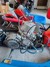 Vendo go kart Energy Corse 125cc motorizzato TM K9C. Al kart sono stati eseguiti i seguenti lavori: - sostituzione di tutti i cuscinetti su piantone, braccetti, fuselli - eseguita convergenza e campanatura - sostituito pompa freno anteriore e posteriore, sostituito tutte le pastiglie freno e sostituito disco freno posteriore - sostituito sedile - sostituito tutti i cuscinetti assale Il kart è in perfette condizioni non piegato e non saldato. Monta impianto di raffreddamento con radiatore maggiorato e tendina AF Radiator. Il motore TM K9C ha 50 litri con pistone prima misura 53,93. Monta telemetria Alfano Pro. Telaio anno 2014 .