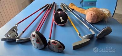 Carrello golf da bambino con 8 mazze varie (come da foto). Su richiesta, maggiori dettagli.