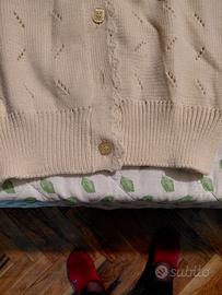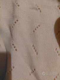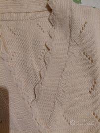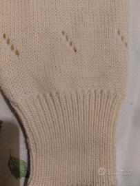 golf donna in pura lana fatto a mano, color panna. nuovo mai indossato. veste taglia 46/48. misure spalle cm 36, seno cm. 96. fianchi cm. 85, manica cm. 58, lunghezza cm. 60. poldi e fianchi finiti con canettini. per dettagli vedi foto