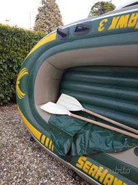 gommone verde usato con remi e cuscini
