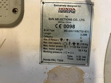 Bellissimo gommone Honwave 3,2 mt., portata 4 persone come da targhetta in foto, compresi remi, panchetta, gonfiatore e sacca. Tentuto sempre rimessato. La sacca presenta alcune tracce di usura e le etichette Howave sul gommone vanno rincollate (se uno vuole). Ottimo per camper. Motore gambo corto non incluso, E’ datato e per questo il prezzo è basso, ma ha sempre fatto il suo ottimo servizio quando si ha bisogno di un gommone maneggevole e trasportabile in auto o camper e non si e’ in tanti a trasportarlo. Ritiro solo direttamente, no spedizione.