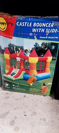 salve ,come da titolo vendo castello Gonfiabile Con motore x gonfiare, e prr mantenimento nuovo, con piccola foratura che può essere ripararata al costo di 20€