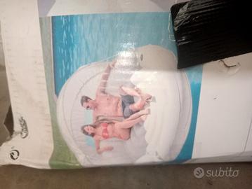 gonfiabile molto bello, spazioso e comodo, con porta bicchieri laterali e una tenda da sole removibile, materiale molto resistente, ideale da mare o da giardino.. usato pochissimo , pagato su Amazon 100 EUR, vendo a 60 trattabili
