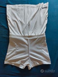 Due gonnellini, uno bianco e l'altro nero, complete di pantaloncino integrato, perfetti per attività sportive quali il tennis.