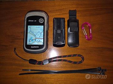 GPS Garmin etrex 30 perfettamente funzionante. Aggiornato all'ultima versione firmware disponibile. Mappe precaricate. - supporto per aggancio moschettone - moschettone - Supporto manubrio bicicletta. - n. 4 fascette di fissaggio in plastica. - n. 1 laccetto sicurezza Funziona con 2 pile stilo AA (standard o ricaricabili). Il GPS presenta una riparazione sul tasto di accensione che non ne compromette la funzionalità ed il tasto menù è leggermente rovinato ma funziona perfettamente.