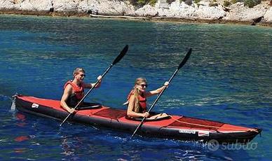 Grabner ESCAPE 2 – anno 2021 – condizioni eccellenti In vendita per trasferimento in Alto Adige. Vendiamo kayak Grabner ESCAPE 2 (2021) in condizioni tecniche ed estetiche ottime, usato pochissimo, privo di difetti e mai utilizzato in acqua salata. Pressione di esercizio 0,3 bar. Il kayak si trova attualmente in Alto Adige. Su accordo è possibile consegna privata con montaggio e spiegazione inclusi nel prezzo. In alternativa: visione, ritiro diretto o ritiro tramite spedizioniere. Prezzo di listino attuale Grabner: ca. 3.100 EUR IVA inclusa (senza accessori). Qualità Grabner – Made in Austria Realizzato in puro caucciù EPDM (non PVC): estremamente robusto, durevole e facilmente riparabile, anche tramite servizio ufficiale Grabner. Utilizzo: ideale per fiumi, laghi e navigazione costiera, anche per tour di più giorni con bagaglio. Adatto ad acque ferme e fiumi moderati (whitewater classe II). Dotazione (incl. BONUS): Zaino ORTLIEB X‑Tremer 150L 2 coprispruzzi, 2 sedili gonfiabili + 2 sedili ad alta pressione Poggia‑piedi regolabili, reti portaoggetti Sistema di governo a pedali Borsa di trasporto originale Grabner Manuale e dichiarazione di conformità Accessori inclusi: Sistema di timoneria (2020) 2 pagaie doppie (carbonio + alluminio) Coprispruzzi e gonnellino whitewater, borsa stagna, cime Dati principali: 500×75cm | 27,5kg | Portata 200kg | 2 persone | montaggio 12–15min | categoria D.