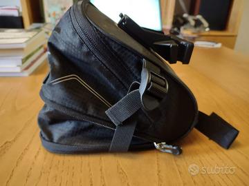 media borsa sottosella, capacità nominale 1,3 L ma secondo me anche di più quando è competamente aperta Ha due cerniere con possibilità di due volumi diversi. peso circa 190 g Il sistema di aggancio alla sella consente di attaccare e staccare la borsa con un semplice click, quindi è ideale nei giri quotidiani per tenerci anche chiavi, documenti e denaro, oltre che kit riparazione, barrette, e persino una giacchina leggera. Usato poco.