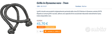 2 grilli tessili DYNEEMA cima Diametro 12 marlow scalzato SK 78 30€ la coppia 60€ 2 coppie