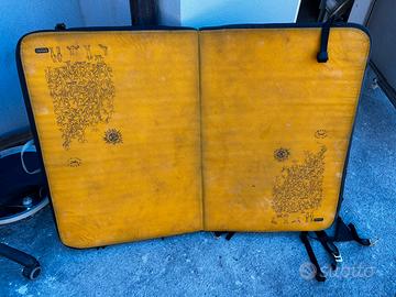 Vendo crash pad Grivel di piccola taglia, ideale per bouldering su roccia e allenamento. Chiusura a libro con spallacci regolabili per trasporto comodo. Maniglie robuste e tessuto resistente all’abrasione. Il crash pad è in ottime condizioni, usato poche volte e sempre conservato al chiuso. Nessun taglio o danno strutturale. L’imbottitura è ancora compatta e assorbe perfettamente gli impatti. Perfetto per chi cerca un materasso da boulder pratico e facile da trasportare. Possibilità di spedizione o consegna a mano in zona.