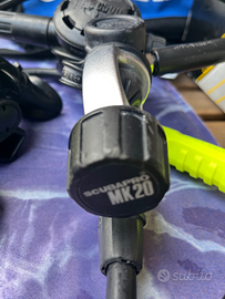 Gruppo erogatori composto da primo stadio Scubapro MK20, erogatore Scubapro G500, erogatore Scubapro R190 e manometro in buono stato, consiglio revisione perche' inutilizzati da un po' di tempo, vendo perche' non mi immergo piu'.