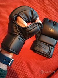 Guanti boxe, fit boxe, sacco, muay thay, sparring, arti marziali, MMA, usati solo 2 volte, marca CONRIE, praticamente nuovi, imbottitura rigida anti shock. Taglia L uomo + corda salto veloce a cavo ricoperto