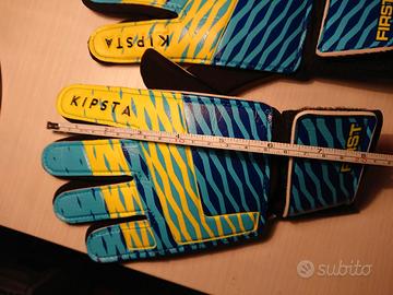 Palmo rivestito in EVA altamente resistente per una maggiore resistenza nell'arresto dei tiri e nel contatto con il terreno. L'ampia apertura li rende facili da indossare e il polsino con linguetta a strappo li mantiene fermi in posizione. Tg.6, vedere misure in foto.