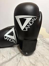 Vendo guanti da boxe Vandal, taglia S, colore nero opaco con logo bianco. Perfetti per allenamenti di boxe, kickboxing, muay thai, MMA e fitness.
