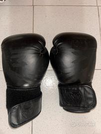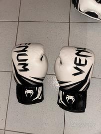 Guanti boxe e caschetto Venum. Guanti bianchi e neri da 14 oz Guanti neri da 12 oz Caschetto con strappo per allaccio