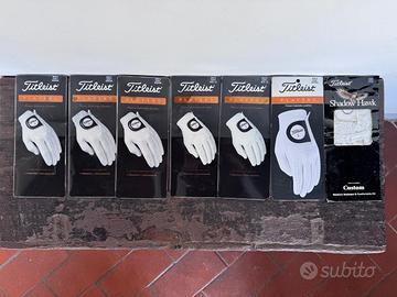 * 6 guanti Titleist Players (tutti nuovi nella confezione, da uomo per mano sinistra — le taglie variano: Media, Media/Grande, ecc.)