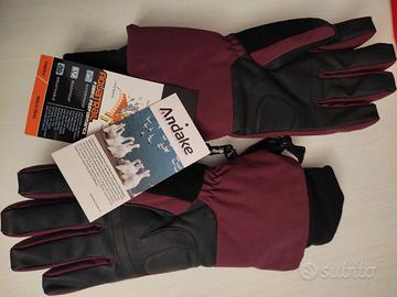 guanti sci Andake colori nero e bordeaux come da foto. Guanti caldi antivento - I guanti da sci Andake sono realizzati in tessuto poliestere antivento e sono foderati in velluto TR plus, gli strati intermedi sono imbottiti con piuma d'oca . I guanti invernali Andake trattengono saldamente il calore contro il vento freddo, mantenendo le mani comode e calde. Guanti impermeabili e traspiranti - I guanti invernali hanno una membrana impermeabile in TPU di alta qualità all'interno, che rende i guanti impermeabili pur consentendo all'umidità di fuoriuscire dalle mani, mantenendole in uno stato asciutto e confortevole. I fori di ventilazione recentemente aggiornati sulla superficie dei guanti consentono alle tue mani di respirare liberamente. Antiscivolo e touch screen: i guanti caldi invernali con pelle PU antiscivolo con doppie cuciture migliorano la presa e prevengono l'usura quotidiana e sono resistenti allo scivolamento. Le dita sono realizzate in pelle PU conduttiva, puoi utilizzare telefoni cellulari, iPad, orologi intelligenti e altri pannelli sempre e ovunque, senza dover togliere i guanti Tasca con cerniera e design di regolazione - Il retro dei guanti è progettato con una tasca con cerniera per riporre piccoli oggetti come contanti, carte di credito e chiavi. Il polso è dotato di fibbia a torre in nylon regolabile e coulisse che si adatta alle dimensioni del polso. I polsini estesi in maglia elasticizzata impediscono al vento freddo e alla neve di entrare attraverso i polsini. Design antiscivolo e in tessuto per la pulizia: i guanti da sci Andake sono adatti per lo sci, il ciclismo, l'escursionismo, lo snowboard e una varietà di sport invernali all'aperto. C'è una fibbia sul lato dei guanti. Bloccare la fibbia per evitare di perdere uno dei guanti quando non vengono utilizzati. Il lato del pollice dei guanti ha un panno per la pulizia progettato per pulire neve, sudore e nebbia sugli occhiali da sci o sul viso.