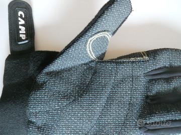 Causa purtroppo inutilizzo, cedo Guanti da ferrata Camp mod 1602, interi full-fingers, in perfetto stato, praticamente mai utilizzati (si nota dalle foto di dettaglio). Misura S (circonferenza palmo 19-20), in colore nero con traccia blu scuro. Velcro regolabile al polso. Palmo in materiale resistente all'abrasione, dorso traspirante e leggero. Adatti per uso normale. Peso di soli 69 grammi. Pagati 24euro.
