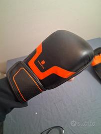 colore nero e arancione, in pelle taglia 9/xl io sono fisicamente una taglia M ma mi vanno benissimo vestono aderenti.