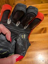 Guanti professionali da sci Leki da bambino, usati una stagione, con paranocche e protezioni sul dorso della mano.