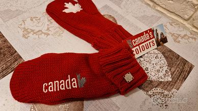 Vendo guanti stile moffole nuovi, di colore rosso e con i simboli della bandiera canadese, ancora con il cartellino. Comprati in Canada e non ancora usati.