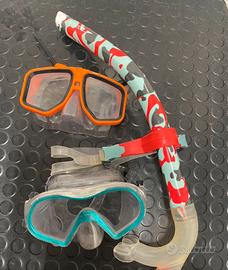 Muta e guanti 5 mm taglia S per atleti 55-65 kg altezza 1.55-165 cm pochissima usata e due maschere in buone condizioni con tubo aeratore snorkel Speedo per nuoto, sub e apnea