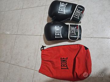 Guantoni Boxe Leone 10 oz + custodia Fasce Leone Cavigliere Set ideale per chi si sta per approcciare alla boxe/ kick boxe o Muay Thai