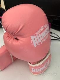 Guanti per fit boxe, savate, box francese e sport da contatto. Marca Rumble 14 oz, acquistati in Olanda ed usati 10 minuti. Sono completi di bendaggio per le mani, praticamente nuovi.