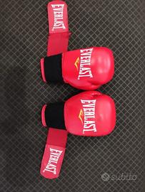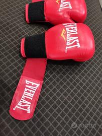 endo guantoni da boxe originali Everlast, colore rosso, usati pochissimo e in ottime condizioni (come da foto). Ideali per boxe, kickboxing, allenamenti al sacco o sparring leggero.