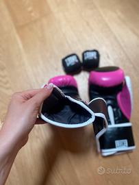 Guantoni da boxe rosa e neri marca Leone 1947, taglia 10OZ, condizioni ottime, pari al nuovo, mai usati.