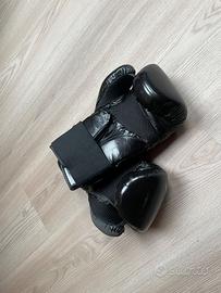 Guantoni da boxe Domyos, condizioni discrete ( si sta staccando la pellicola lucida come da foto)