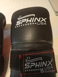 paio di guantoni da boxe o kickboxing,utilizzati pochissime volte, taglia M, marchiati Sphinx Usa, chiusura a velcro