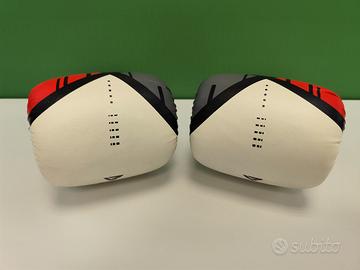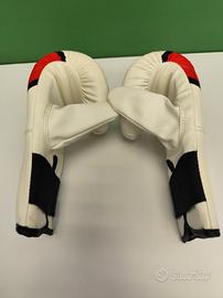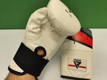 Guantoni da sacco e da boxe, nuovi mai usati, vendo per inutilizzo, Scheda tecnica:(Ottieni la combinazione perfetta di comfort e prestazioni durature con un paio di guantoni da boxe altamente resistenti che offrono un ampio supporto per il polso e protezione per le mani per soddisfare tutte le tue esigenze di allenamento. Il design precurvato previene l'affaticamento della mano offrendo zero resistenza alla formazione dei pugni. L'imbottitura in schiuma Supremo-Shock calibrata consente il giusto assorbimento degli urti, proteggendo e condizionando le nocche. Sferra pugni con tutta la tua forza e con sicurezza, e prolunga il tempo di allenamento al sacco con un rischio minimo o nullo di infortuni. I fori strategicamente posizionati garantiscono la ventilazione per mantenere le mani fresche e ventilate in ogni momento. La chiusura assicura una vestibilità sicura e facilita l'applicazione e la rimozione.