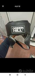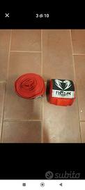 Vendo tre paia di guantoni, caschetto, due fasce per mani e parapalle, il tutto usato pochissimo come si può vedere dalle foto con ancora le proprie sacche