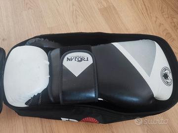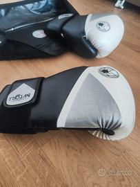 Guantoni kick boxe e boxe, con custodia. Taglia L, marca Trojan. Davvero in ottimo stato, s nza segni usura, perfetti per principianti e per medio livello, ottimi con il sacco