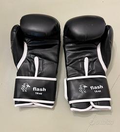 Guantoni da boxe in sintetico perfetti per tutti coloro che decidono di iniziare la pratica degli sport da ring. Materiale tecnico traforato presente sul palmo. Imbottitura a strati in Flex PU per una maggiore aerazione della mano. Apertura a strappo, colore nero e misura 14 oz.