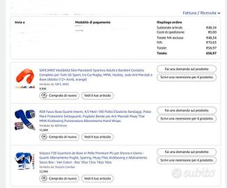 Come da foto guantoni + fasce mani/polsi + paradenti adulto Nuovi mai usati. Acquistati su Amz in anno fa , ora in vendita per 70€.