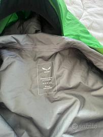 Vendo guscio alpinismo usato Salewa in goretex active taglia S colore verde e verde fluo, con doppia tasca, cappuccio regolabile, vita regolabile, e cerniere di ventilazione. Zip tasche e frontali non funzionano più bene vanno sostituite, piccolo taglio all interno della tasca