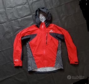 guscio tecnico per l'alpinismo in GORE TEX due strati e mezzo (2,5 layers molto leggera e compattabile o comprimibile) cerniere ascellari per la ventilazione, tasche napoleone alta per uso imbrago e cappuccio compatibile per casco, sci alpinismo, vie classiche in quota sopra i 3000 - 4000 metri in ghiacciaio, arrampicata, cascate di ghiaccio, via ferrate, guide alpine, operatori del soccorso alpino, ottima come antipioggia per trekking e escursionismo campeggio