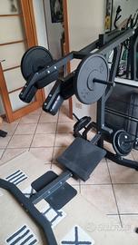 Struttura molto solida. L'ho utilizzata sia appoggiando i piedi sulla pedana (molto simile a un pendulum squat), sia con i piedi a terra per uno squat più classico; si può fare anche un bulgarian squat appoggiando un piede su una panca dietro.