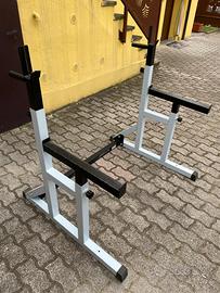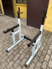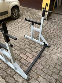 Rack in buone condizioni con lievi segni d’usura, può essere regolato per svolgere vari tipi di alzata oppure richiuso per avere una dip station.