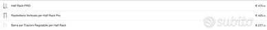 Vendo Half Rack Lacertosus praticamente nuovo, con rastrelliera porta dischi e barra trazioni regolabile. Prezzo non trattabile. Solo consegna a mano.
