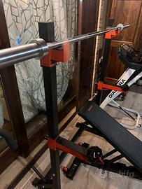 Rack perfettamente funzionante con carico fino a 200kg con possibilità di avere panca, bilanciere olimpionico, pinze e pacco pesi.