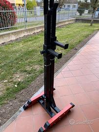Vendo half rack in buonissime condizioni. Mostra qualche nornale segno legato al tempo (minime parti di vernice arruginite alla base e dove si poggia il bilanciere) ma risulta ancora perfettamente stabile e solido. Ottimo per esercizi come squat, RDL, rematore con bilanciere, panca piana, military press e praticamente ogni altro esercizio che coinvolga un bilanciere. Portata 200kg, con 16 livelli di regolazione (di cui 6 del porta manubri). Altezza max Resto disponibile per eventuale visione dal vivo, ma solo per chi realmente interessato. Prezzo trattabile Preferisco consegna a mano per ovvi motivi logistici.