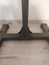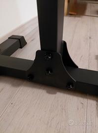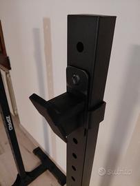 Vendo half rack in ottime condizioni. Ritiro a mano a Vicenza preferibilmente in zona Creazzo colle La vendita deriva dal passaggio ad un rack a gabbia. Il rack risulta molto stabile a patto che il pavimento su cui viene posizionato sia preciso e non presenti avvallamenti di qualche sorta. Sono disponibili 18 buchi per regolare l'altezza dei j hook L'unico segno d'usura è una leggera sverniciatura dei j hook derivata dall'attrito con la zigrinatura del bilanciere (riportato in foto). I j hook sono comunque ricoperti da una protezione in gomma quindi non ammaccano i bilancieri in caso di urto troppo forte. Per avere un'idea dell'ingombro ho inserito una foto con le relative misure. Il montaggio è estremamente semplice ed intuitivo. SONO DISPOBILE AD INVIARE FOTO DETTAGLIATE DELL'INTERO PRODOTTO (ATTUALMENTE SMONTATO) SU RICHIESTA